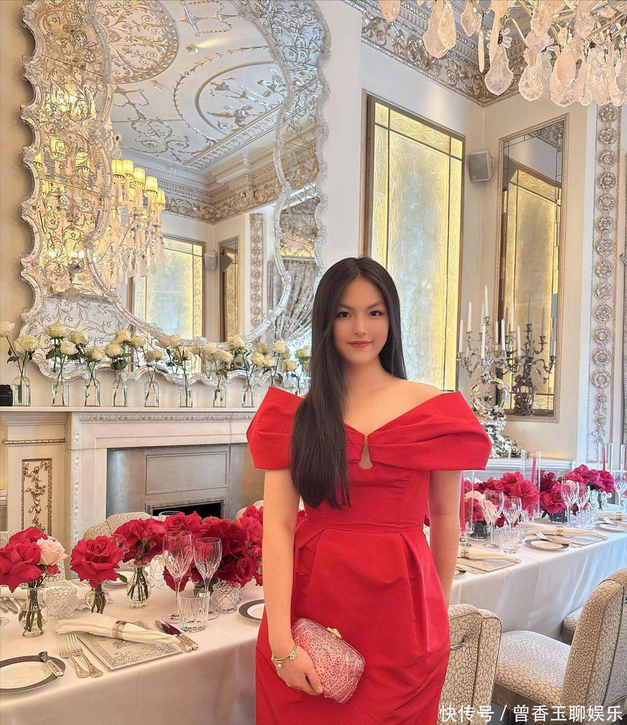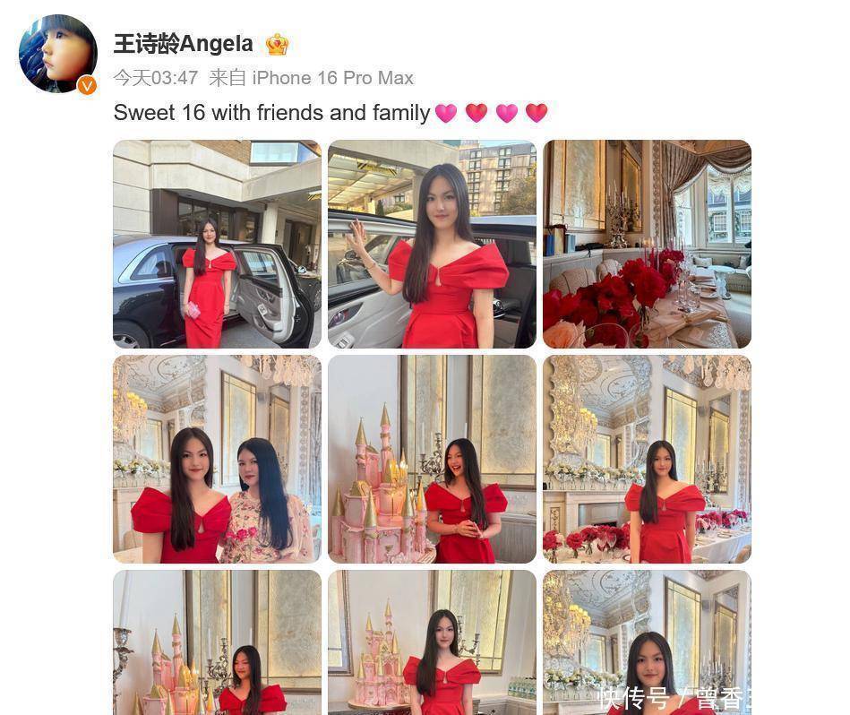 生日派对现场富丽堂皇似城堡,王诗龄身穿大红色礼服,端庄优雅。现场精心布置,摆满了鲜花和餐具,邀请的人应该不少,还有超大型粉色城堡蛋糕,奢华又梦幻。